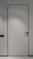 Дверь под покраску в скрытом коробе с алюминиевой кромкой. Система REVERSE - внутреннее открывание двери