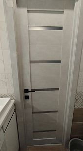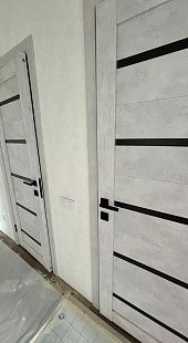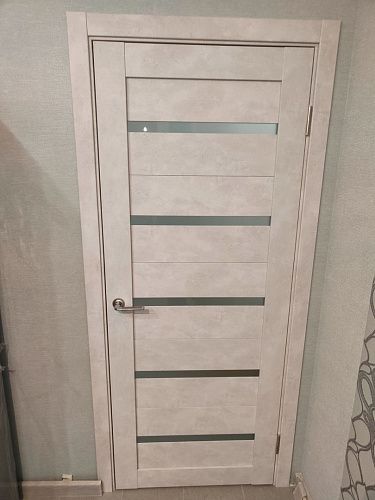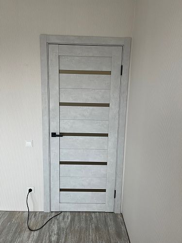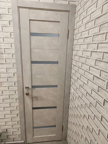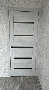 Дверь ПО Relief 1 Бетон лайт стекло графит из Экошпона COVERFLEX (Двери Нева) в с установкой и доставкой