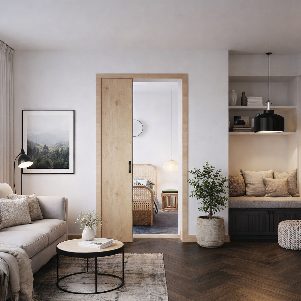 Пенал, предназначенный для установки одного полотна, обрамлённого доборами и наличниками, в проём, сдвигающегося влево или вправо. Подходит для монтажа в стены толщиной до 150 мм. Может использоваться при новом строительстве или ремонте.