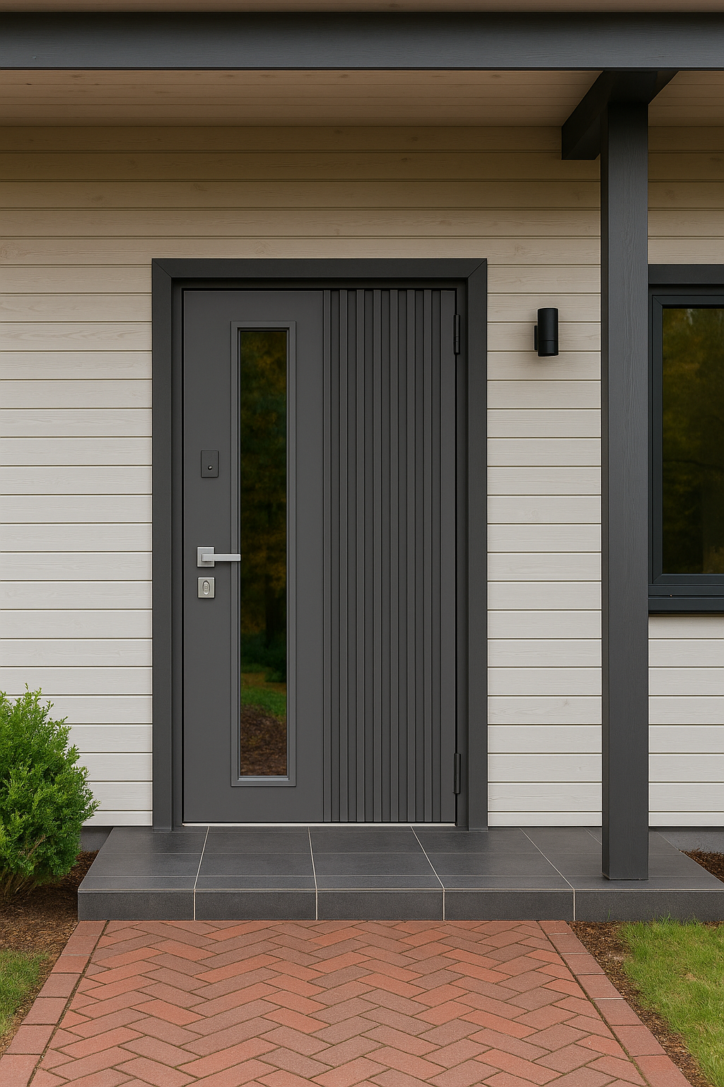 атмосферостойкое порошково-полимерное покрытие+оцинковка, реечный декор, стеклопакет 2-х камерный тонировка серебро